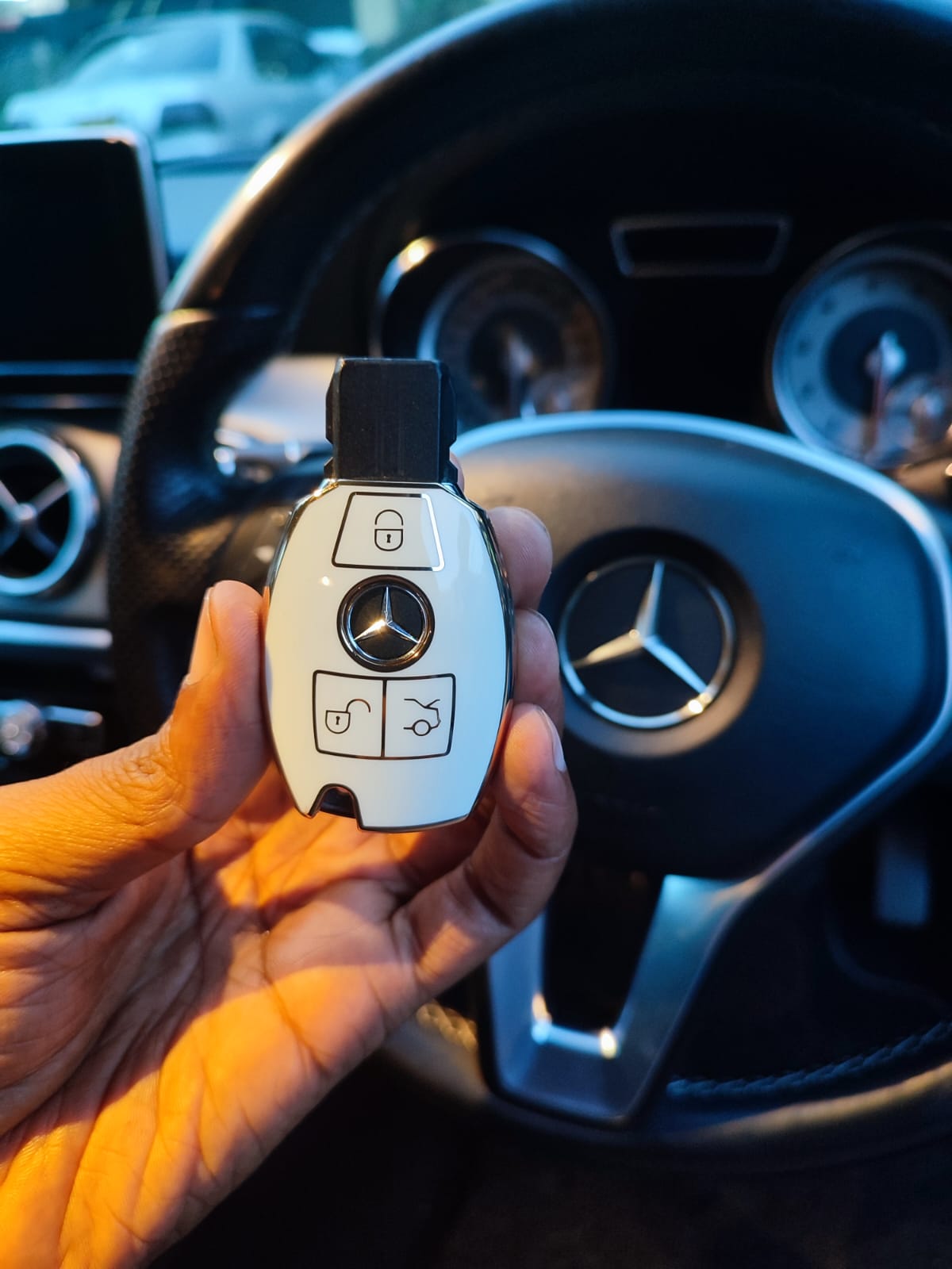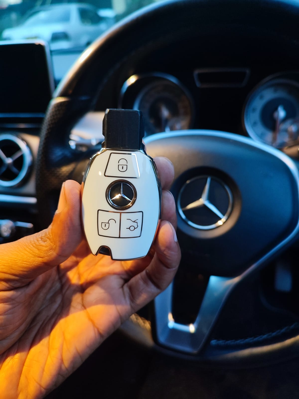 This Mercedes key cover will fit a variety of Mercedes models which use the 2 or 3 button smart key.