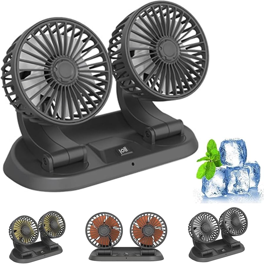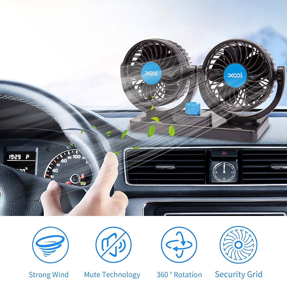 Car fan with usb port adjustable dual head double head car fan 12v 24v